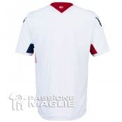 Prima maglia home a quattro bande rossoblù, con inserti giallo oro che richiamano lo scudetto societario. Sulle maniche i loghi Macron sono in bianco, così come il lettering sul petto.
