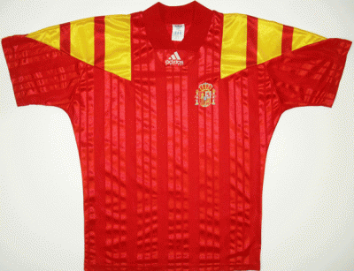 Adidas è fornitore tecnico della nazionale campione del mondo dal 1992, ma già ai mondiali casalinghi del 1982 erano comparse le tre strisce del marchio tedesco sulle maglie delle furie rosse. All’epoca maglia molto semplice, rossa con le tre strisce gialle lungo le maniche, calzoncini azzurri e calzettoni neri con risvolti giallorossi. Da notare la maglia da portiere, reinterpretata e riproposta per i mondiali del 2010.