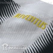 Nike propone di nuovo un tocco particolare per le tradizionali strisce bianconere. Lo zig-zag è sostituito da un effetto “pelo di zebra” che da lontano può essere confuso con una sfumatura. Lo swoosh è giallo, così come la scritta Juventus sul retro del colletto. Anche i numeri probabilmente saranno gialli.