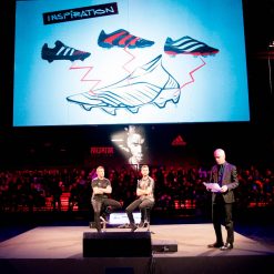Il passo è breve per entrare nella “arena” allestita per il talk show di presentazione: ai due lati opposti ci sono gli spalti pronti ad accogliere gli spettatori, mentre sugli altri due lati divertimenti per i ragazzi che Adidas ha portato per conoscere in prima persona il mondo Predator, con quiz dedicati alle scarpe e spazi per testarle a calcio-tennis o con un gioco di sponde elevate.