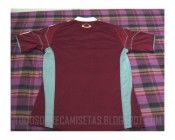 Il colore predominante è il bordeaux, con inserti grigi sotto le ascelle e sul retro. In bianco invece la parte superiore del colletto, le strisce e il marchio Adidas.