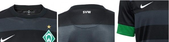 Mantenuto ancora il verde come colore principale della prima maglia. Dopo la saetta di due stagioni fa e il design a spina di pesce del 2011-2012, quest’anno è il turno di losanghe tono su tono, un richiamo alla forma dello scudetto del Werder.
