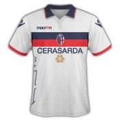 Ritorno agli anni ’20 e ’30 con la seconda maglia bianca da trasferta. Al centro troviamo una banda orizzontale rossoblù con lo stemma societario in mezzo. Colletto sempre a polo con un bordino bianco, stessa soluzione adottata per le maniche. Calzoncini blu, calzettoni bianchi e numeri rossi completano la divisa.