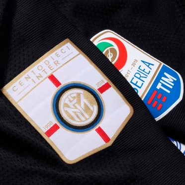 Sulla manica sinistra è apposto il logo dei 110 anni, uno scudetto bordato di oro con la croce rossa di Milano su cui poggia lo stemma dell’Inter. In alto c’è la scritta “Centodieci Inter”, mentre ai lati della croce sono raffigurati gli anni “1908” e “2018”.