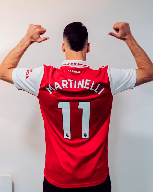 Il resto della casacca rispecchia il modello ideato da Herbert Chapman, corpo rosso e maniche bianche con l’aggiunta della scritta “Arsenal” applicata sul retro del collo.