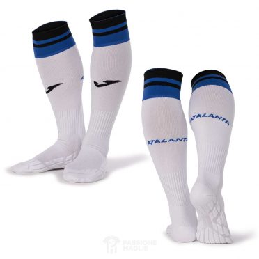 Sul petto c’è lo stemma ricamato con la Dea che corre, il viso della Dea è presente anche sul lato destro con tecnica embossed, come si può apprezzare dalle foto dei dettagli. Bianchi sono i calzoncini e le calze, entrambi con finiture nerazzurre a riprendere le tinte sociali.