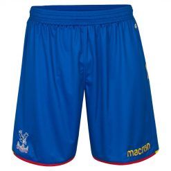 Il look total black da trasferta del Crystal Palace si completa con pantaloncini neri bordati di bianco in fondo e calzettoni anch’essi neri con una riga rossoblu contornata dal bianco che li attraversa centralmente.