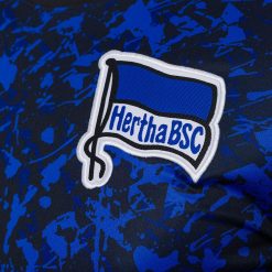 Cambia anche il colore dominante che risulta essere il blu con le sue cinque bande rispetto alle quattro bianche. Ai due colori storici della squadra tedesca si affiancano delle linee più sottili di nero. Così come per altri modelli marchiati nike, neanche sulla divisa dell’Hertha vengono meno le saette sui lati, in questo caso di colore nero. Il bianco, infine, domina sul lato posteriore così come sul girocollo.
