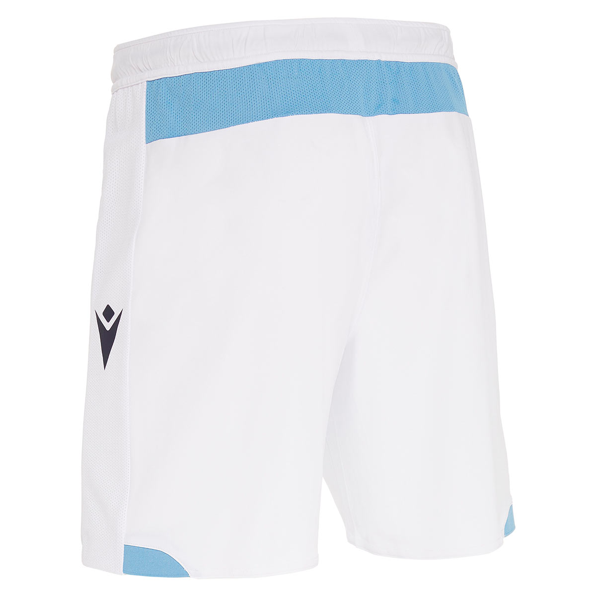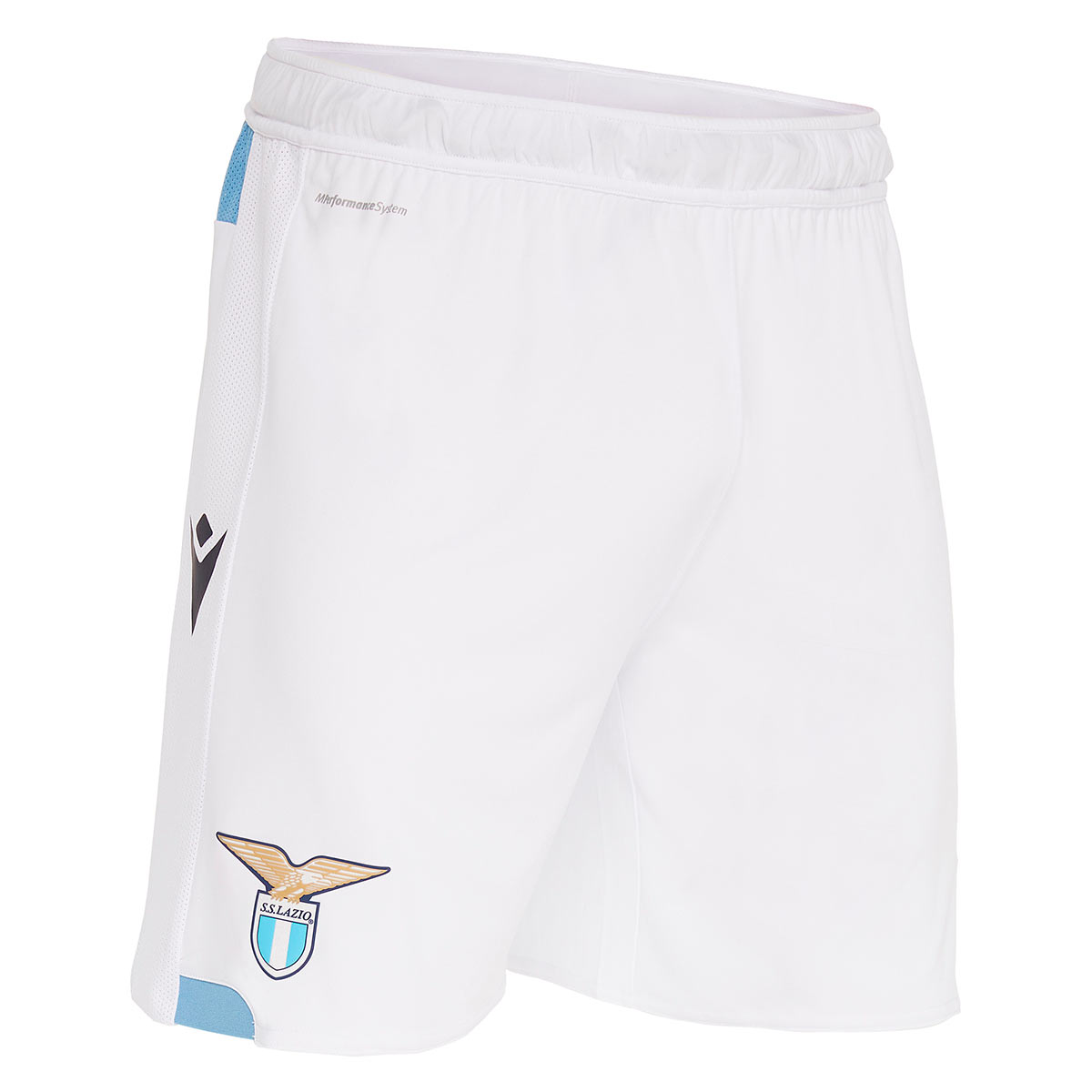 All’interno del collo è stata mantenuto il motto “Noi l’amiamo e per lei combattiamo”, mentre sulla nuca, quasi impercettibile, c’è il nome del club “SS Lazio”. I pantaloncini sono bianchi con coulisse celeste, i calzettoni invece riprendono la trama della maglia e sono a righe biancocelesti.
