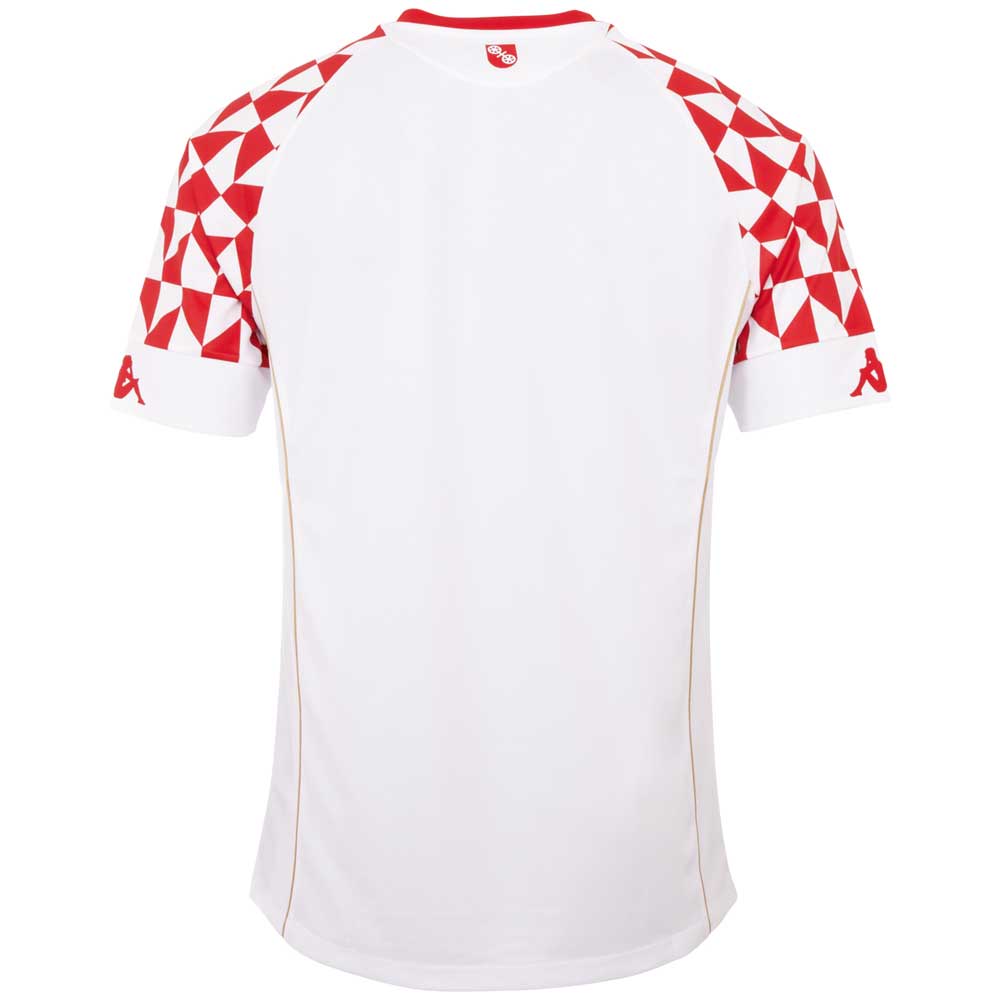 In trasferta la maglia diventa bianca con un colletto a girocollo, permane sulle maniche la speciale texture geometrica. Entrambe le divise di Kappa hanno debuttato in un’amichevole in famiglia, rossi contro bianchi. Per la cronaca i calciatori con la divisa away hanno vinto per ben 6 reti a 0.