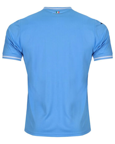 Seconda annata per Mizuno con la Lazio in quella che sarà la stagione dei 50 anni dalla conquista del primo storico scudetto. La maglia home non a caso riprende quella del 1973-74 con lo scollo a V bordato di bianco. In trasferta spazio al blu navy con lo stemma esagonale degli anni ’80 e l’orlo delle maniche tricolore proprio per omaggiare il titolo vinto dai ragazzi allenati da Maestrelli.