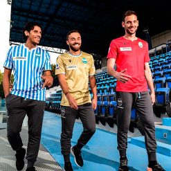 Grande novità per gli spallini è la seconda maglia dorata, anche se il modello è molto simile a quello usato per l’Udinese nella scorsa stagione. Il colletto è a girocollo nei colori sociali bianco e azzurro, lo stesso motivo lo ritroviamo sull’orlo delle maniche.