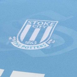 Lo stemma questa volta è monocromatico ed è ricamato sopra il primissimo stemma dello Stoke City comparso nel 1882-83, realizzato nel tessuto con la tecnica “embossed”.