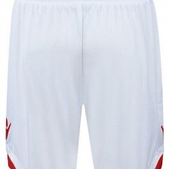 I pantaloncini sono bianchi con la cintura interna blu e un inserto rosso su ogni gamba. I calzettoni invece sono rossi con due righe orizzontali bianche che inglobano il logo Macron e l’acronimo “S.C.F.C.”.