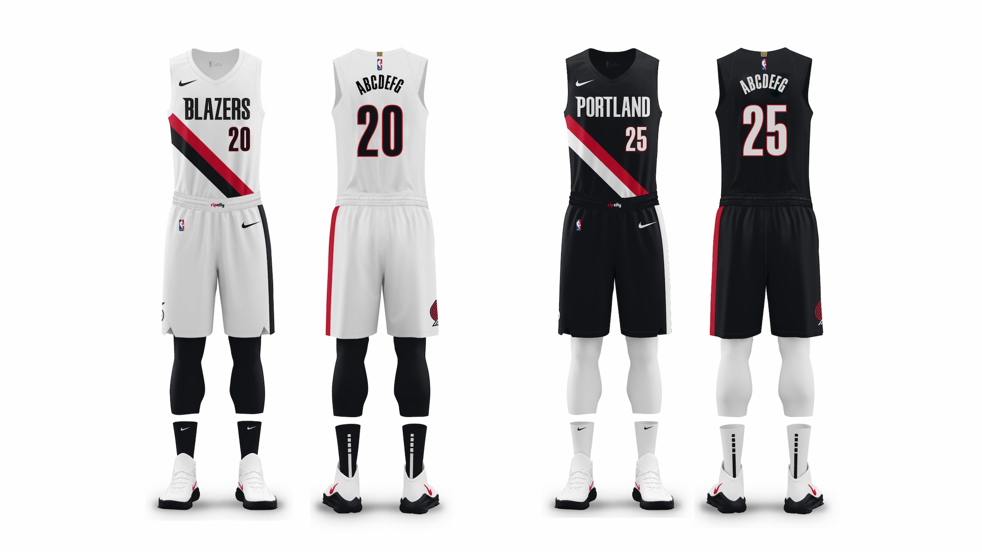 Nella stagione in cui riabbracciano Damian Lillard (che però salterà l’intera annata per recuperare da un infortunio al tendine d’Achille, subito durante gli scorsi playoff), i Blazers decidono di dare una svolta minimal al loro tradizionale look. Lo stile rimane quello di sempre, con le iconiche fasce oblique rossonere su sfondo bianco (Association Edition) e biancorosse su sfondo nero (Icon Edition), ma spariscono i dettagli grigi (introdotti nel lontano 2002) e le spalline rosse. Resta invariata la Statement Edition rossa, disegnata su consulenza dello stesso Lillard nel 2022.