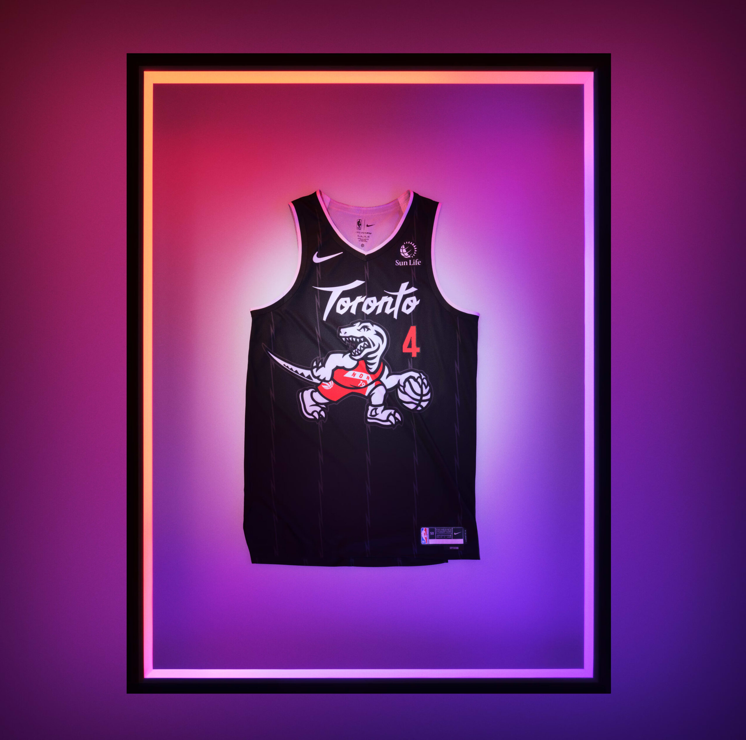 Toronto Raptors: versione con dettagli bianchi e rossi della City Edition utilizzata nella stagione 2021/22. Il velociraptor indossa la divisa Earned Edition utilizzata da Kawhi Leonard e compagni durante gara 6 delle Finals 2019, terminata con il primo titolo NBA nella storia della franchigia.