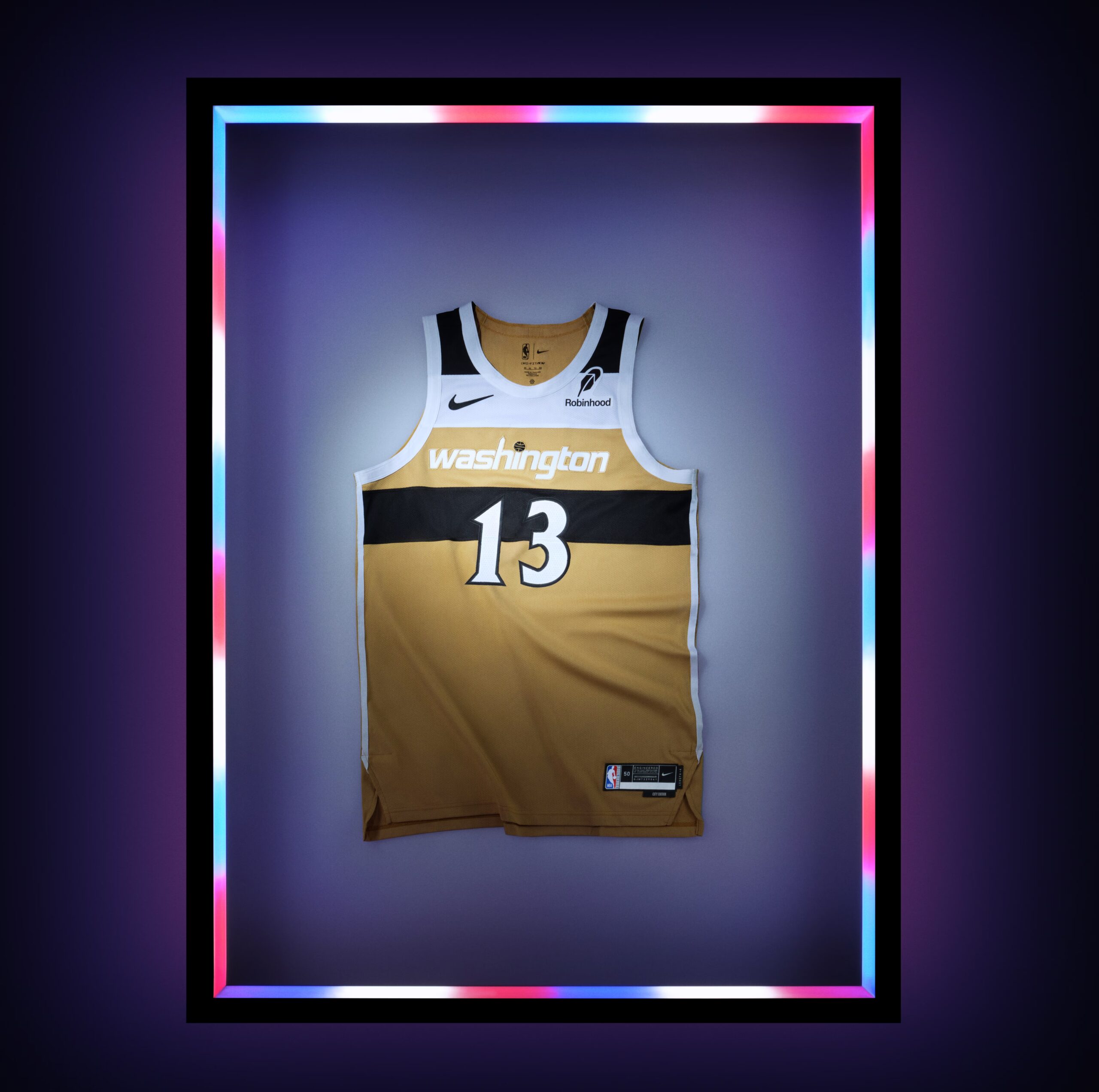 Washington Wizards: versione dorata e bianca (i colori della divisa Alternate indossata tra il 2006 e il 2009) della City Edition utilizzata nella stagione 2021/22