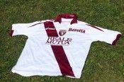 Colletto a V come nella maglia home, e banda diagonale granata stile River Plate. Il main sponsor Italporte asseconda il design della maglia e trova spazio all’interno della fascia granata anzichè interromperla come avviene di frequente per modelli di questo tipo. Tra l’altro è stato ufficializzato che questo sarà il main sponsor per tutta la stagione, scongiurato quindi il valzer che ha caratterizzato il 2009-10. Anche lo stemma