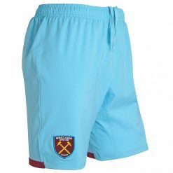 I pantaloncini sono celesti con un tassello claret sul retro, mentre i calzettoni bianchi si distinguono per la fascia orizzontale che riprende i colori sociali.