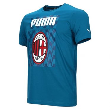 Bianchi sono inoltre i loghi degli sponsor Puma, collocato anche sulle maniche, e Emirates – Fly Better, mentre i pantaloncini e i calzettoni, che ritraggono anch’essi in bianco le iniziali ‘ACM’, posizionate sul fronte, e sul retro il marchio dello sponsor tecnico, proseguono lo stesso verde acqua adottato per la maglia.
