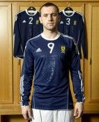 La caratteristica principale del nuovo kit blu è lo stemma della Scozia serigrafato nel tessuto della maglia, a simboleggiare l’orgoglio e l’onore degli scozzesi. Logo dello sponsor tecnico a destra, numero al centro e logo con la bandiera scozzese a sinistra. Colletto a girocollo bianco e le tipiche strisce adidas completano la divisa.